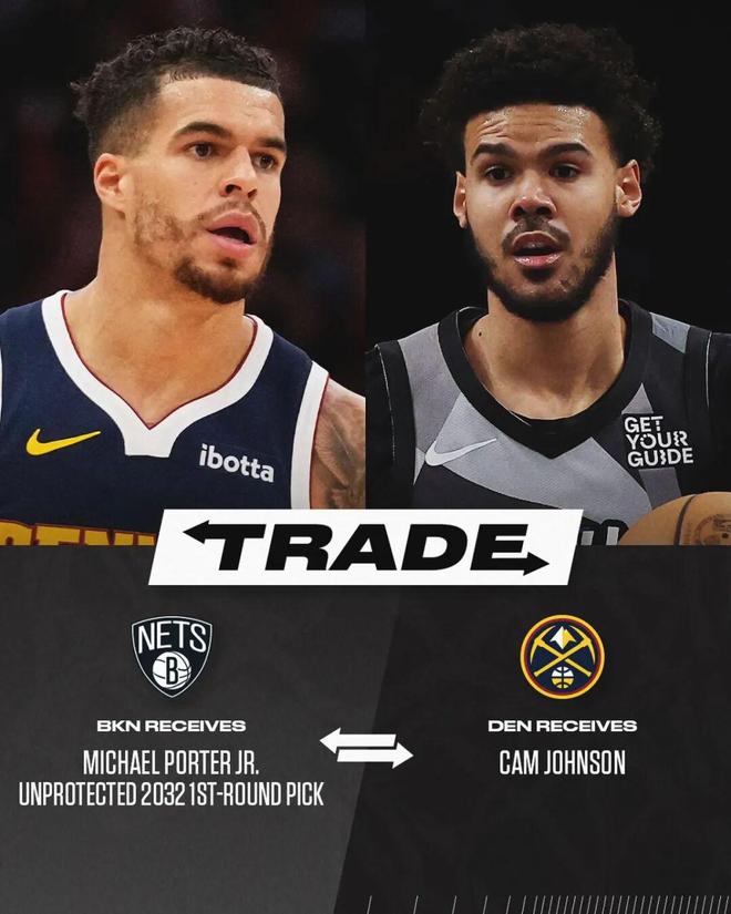 5、篮网曾在卡梅伦约翰逊的交易中寻求多个首轮签,最终掘金只花了1个首轮,并且还让篮网吃下了小波特的大合同