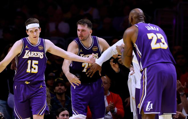 最近两场比赛,詹姆斯场均可以得到24分11篮板7助攻2盖帽,投篮命中率61%,三分命中率44%,罚球命中率75%,真实命中率70%,他在攻防两端正在找回能量,本场比赛的隔扣和追帽是湖人为数不多的亮点,正如前NBA球员丹尼·格林在赛后所说:“现在勒布朗开始找回脚步节奏,身体状态逐渐提升,步伐也更有活力了。他在费城就展现了这种状态,这种势头还在延续。”只要詹姆斯的状态继续好转,加上东契奇和里夫斯,湖人本赛季的下限至少是有保证的。